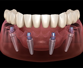A common complaint that some patients have with traditional dentures is that they can slip and shift in their mouths while eating and speaking. If this sounds all too familiar, then we encourage you to ask us about implant dentures! This involves us anchoring your restoration in place with anywhere from four to eight implants that have been placed along the arch. Not only does this lead to a more lifelike look and feel, but it also provides unmatched stability and security.